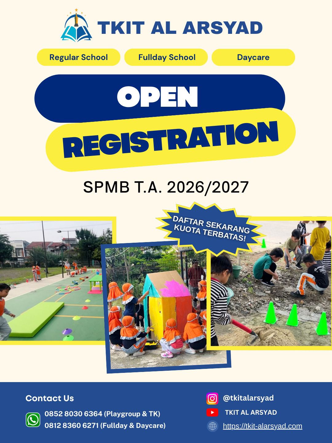 TKIT Al-Arsyad membuka Pendaftaran Peserta Didik Baru (PPDB) Tahun Ajaran